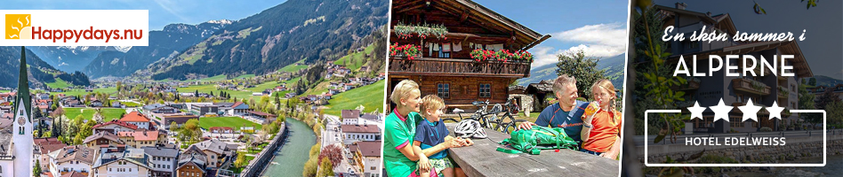 Nyd en skøn sommer i alperne med et af de smukkeste bjerglandskaber, ren alpeluft og panoramaudsigter. I bor på 4-stjernet familieejet, moderne hotel i Gerlos, Østrig med pool og wellness. Opholdet er inkl. morgenbuffet, 3-retters middage, Turistkort, lån af badekåbe, 1 x voucher pr. voksen til massage og værelse med balkon.